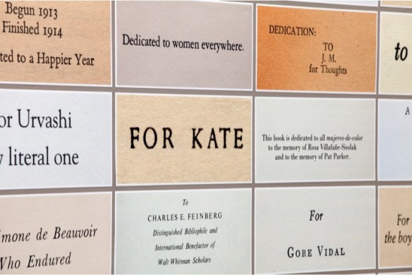 Catherine Lord’s installation at ONE Archives, To Whom It May Concern, will remain on view through May 31, 2012. The installation presents several hundred photographs of book dedications, considerably enlarged, on the walls of the mezzanine space at ONE Archives, encircling the closed stacks of the library from which they were culled. Do not miss this work!