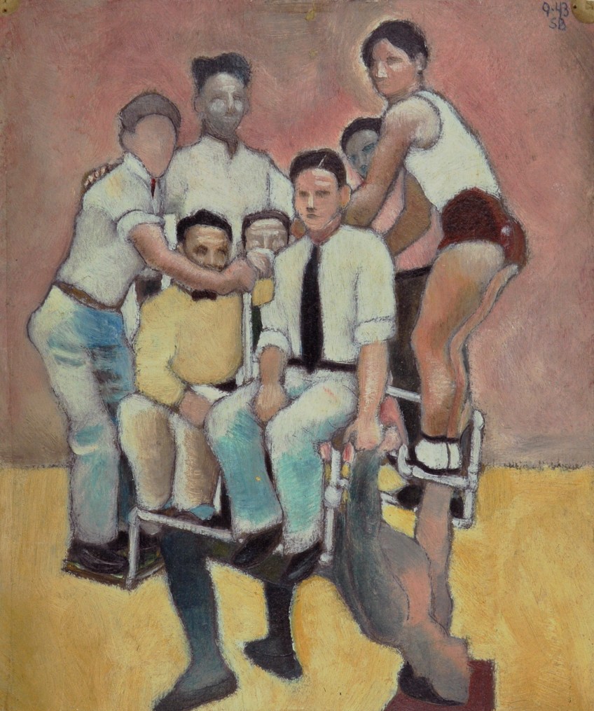 Unknown (Athlete supporting seven youths) Published November 4, 2011 at 1896 × 2271 in Gallery Sidney Bronstein, Unknown (Athlete supporting seven youths), 1943. Oil on paper, 9 1/2 x 8 inches. ONE National Gay & Lesbian Archives Like Loading...