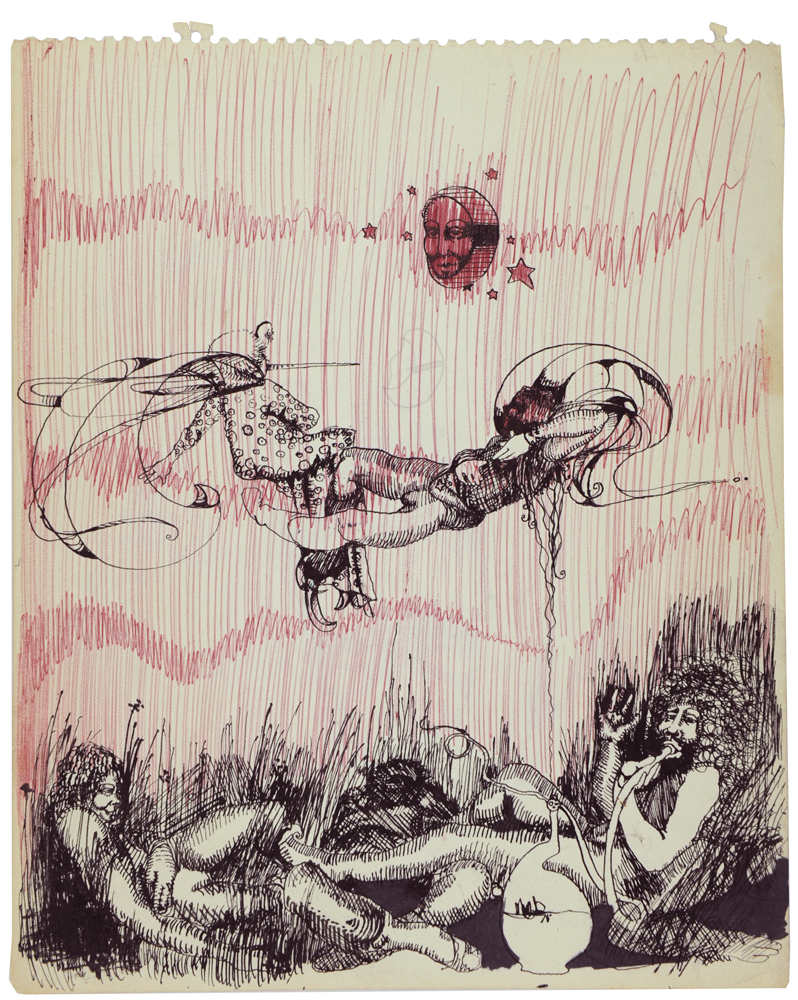 Unknown (Drug trip) Published November 4, 2011 at 798 × 1000 in Gallery Mundo Meza, Unknown (Drug trip), 1970. Ink on paper, 9 3/4 x 8 inches. Cyclona Collection. ONE National Gay & Lesbian Archive. Reproduced courtesy of Pat Meza and Elizabeth Signorelli Like Loading...