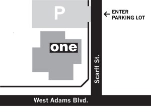 Parking is free. Enter parking lot off of Scarff Street.